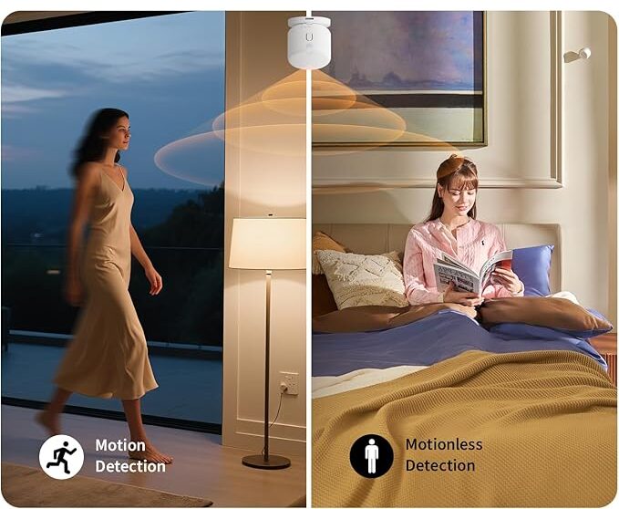 - rilevamento della presenza anche da fermi, ideale per salotto, studio e camera da letto