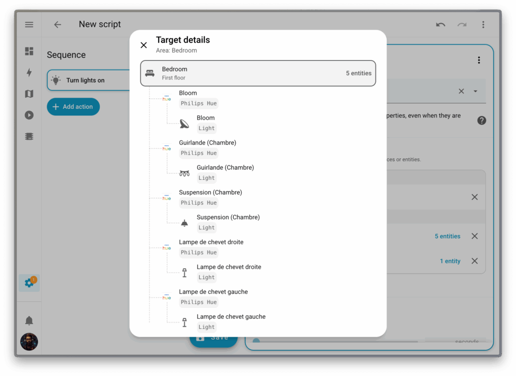 Finalmente è arrivato il nuovo selettore target, molto più chiaro e usabile. Mostra subito quali entità, dispositivi o aree stai selezionando, con anteprime visive e strutturate.